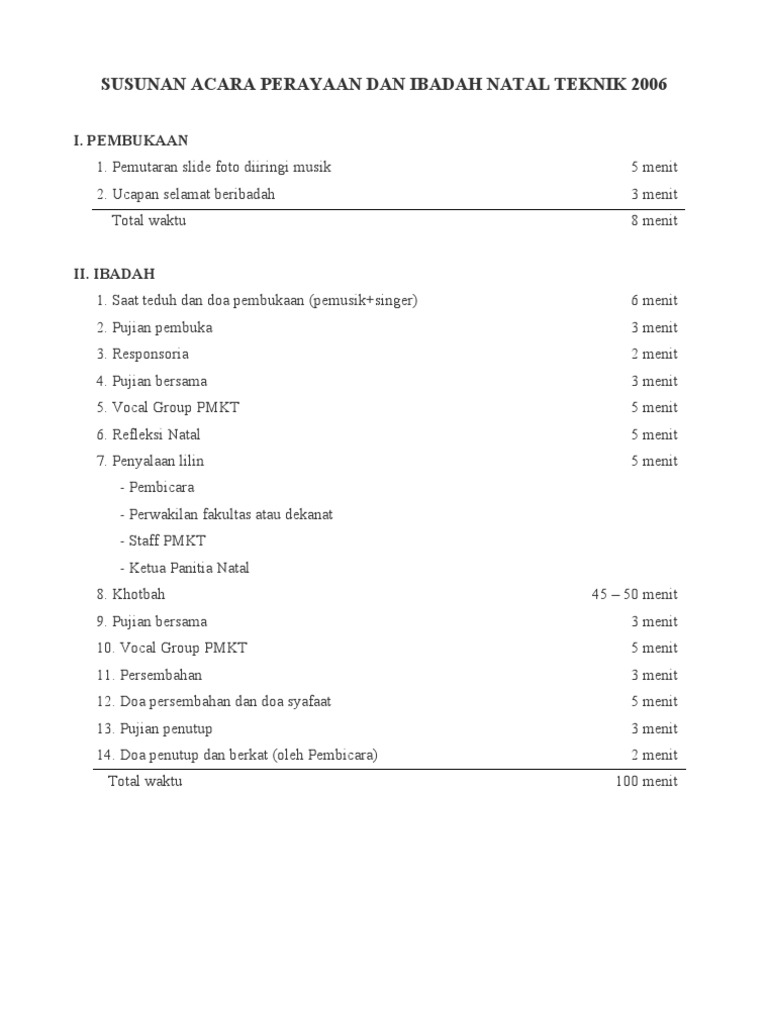 Umat katolik di kota bulukumba, sulawesi selatan, mengaku belum bisa menjalankan ibadah natal dengan aman, setelah diancam keselamatannya jika berkukuh menggelar acara keagamaan di rumah ibadah yang ditolak sebagian warga setempat. Di shunt magetan misalnya rasanya hampir setiap bulan selalu ada saja contoh susunan panitia acara. Semoga susunan zikir, tahlil, dan doa tahlil berikut ini dapat bermanfaat bagi pembaca sekalian. Saat teduh dan doa pembukaan (pemusik+singer) 2. Jenis acara seperti apa yang akan kita buat susunan acaranya, karena di tiap kegiatan atau acara sudah tentu saja susunan acaranya pun berbeda. Acara natal dan tahun baru ini digagas oleh beberapa orang muda katolik (omk), keuskupan agung jakarta. Tata sununan acara reuni yang terstruktur dan baik. Tidak terasa natal sudah semakin dekat. Jadwal acara malam natal dan hari natal. Sehingga, apabila ada tambahan acara berupa upacara adat, maka acara tersebut dapat ditambahkan setelah acara inti dilaksanakan. 505,628 likes · 4,374 talking about this. Ucapan selamat beribadah total waktu ii. Acara ketiga senandung shalawat 4.
